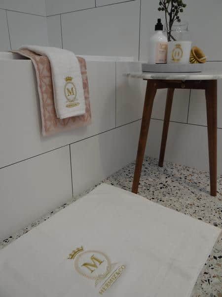 Our Hermiz Bath Towel, Babylon hand towel and Nineveh bath mat are the perfect trio for a luxurious bathroom or space.