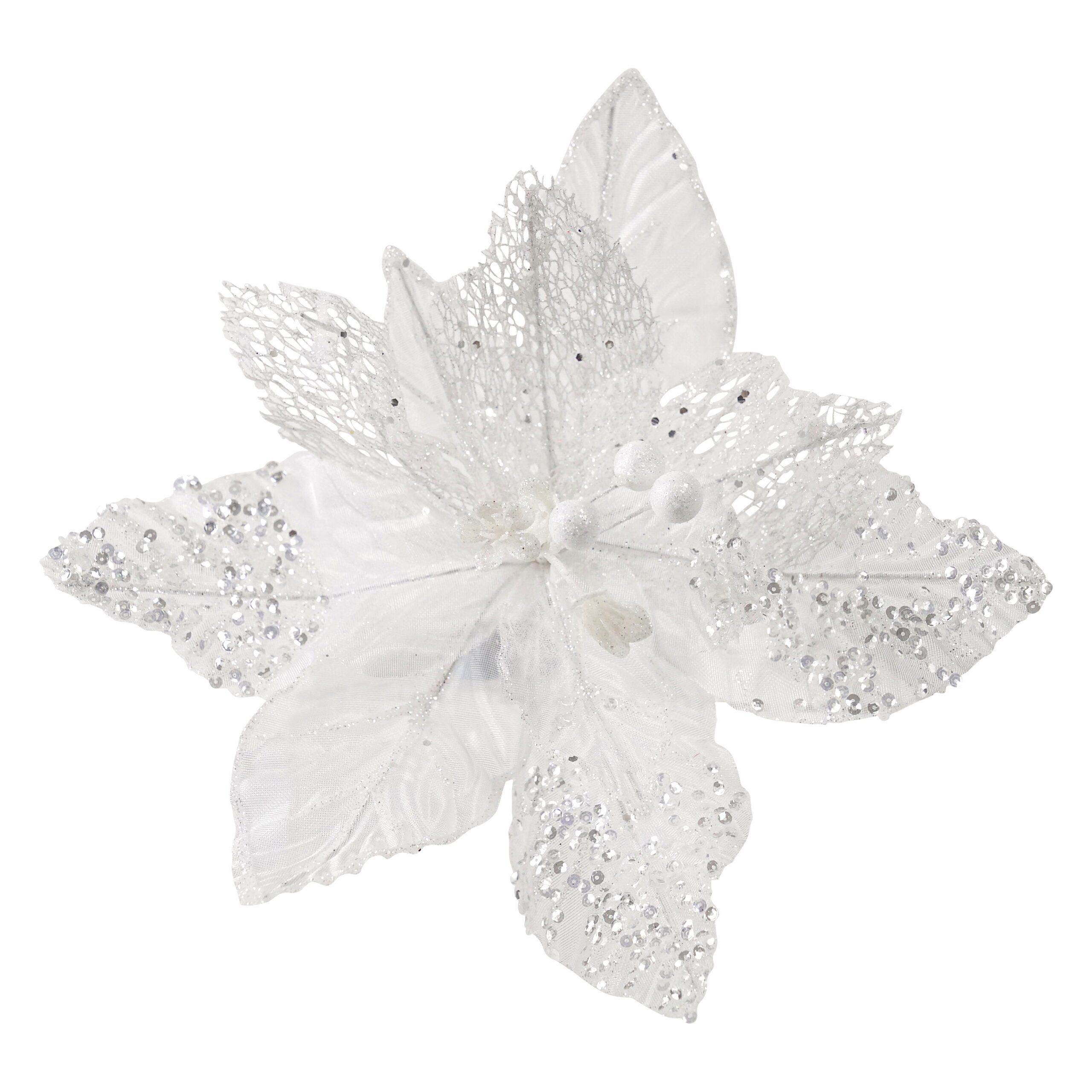 Clip on sheer white glitter Christmas ornament