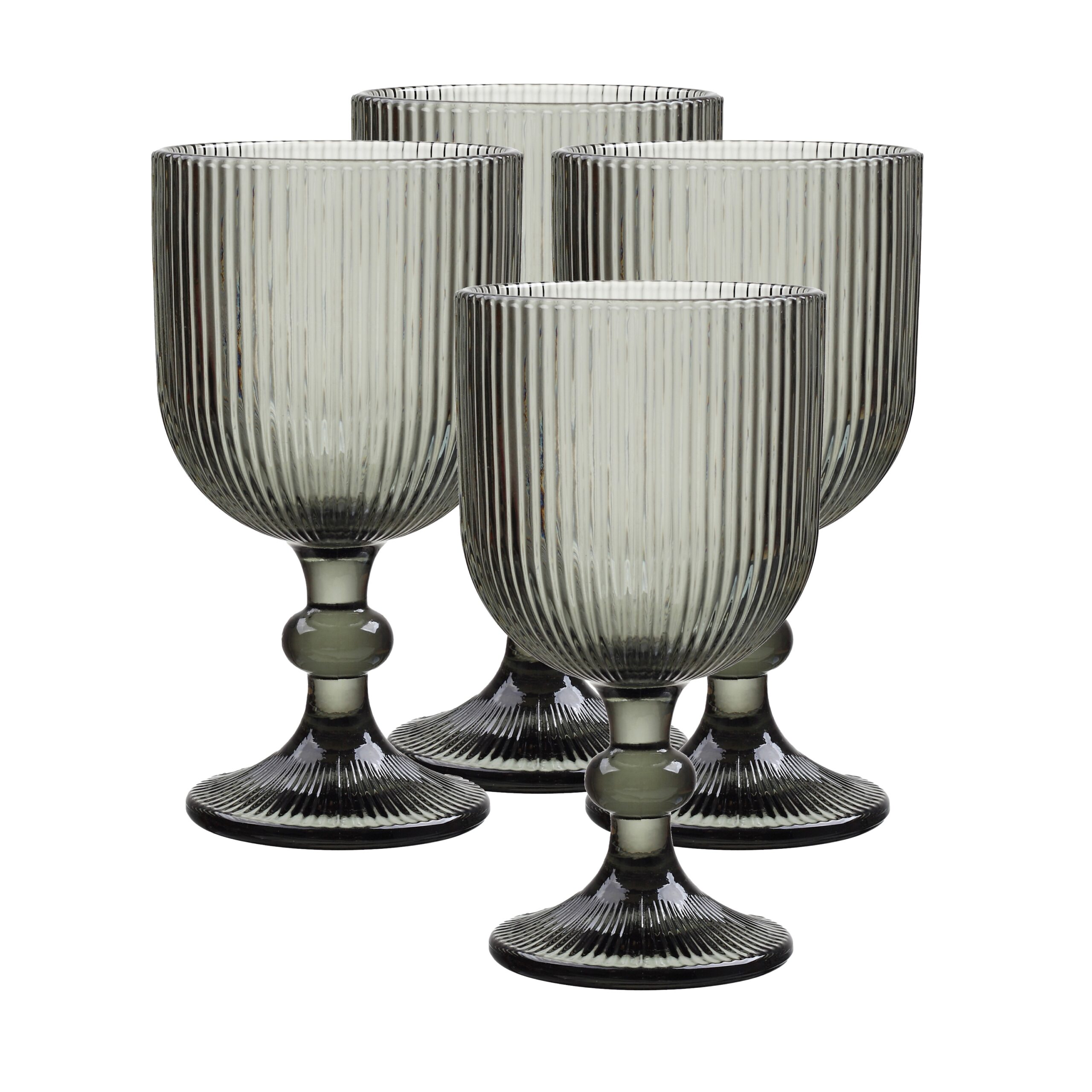 Grey ribbed wine goblet large set 4